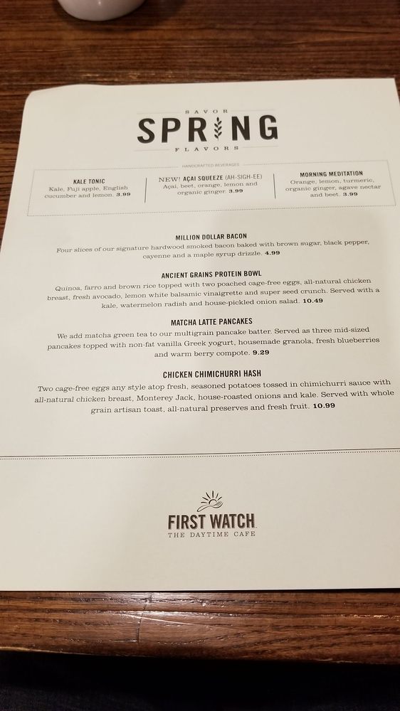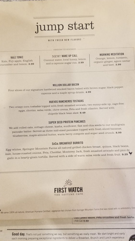 Welcome to First Watch - Hwy 40 L, your go-to destination for American breakfast and brunch in Independence, MO. This charming café opens its doors daily, welcoming guests with a diverse menu that highlights both classic favorites and healthier options. Imagine starting your day with the Traditional Two, featuring cage-free eggs paired with your choice of savory meats, or savoring the vibrant Avocado Toast embellished with fresh ingredients.